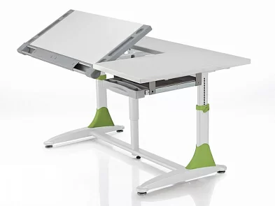 Парта 120 см с раздельной столешницей + короткая боковая приставка 55 см.