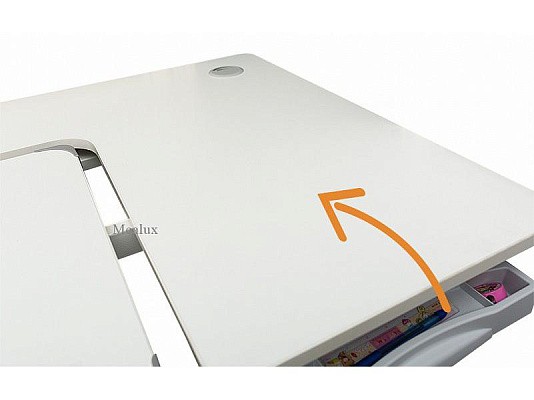 Боковая статичная часть столешницы значительно увеличивает рабочее пространство стола. Таким образом, у ребенка будет достаточно пространства для учебы и творчества.
