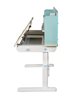 Парта оснащена надстройкой, выдвижным лотком для принадлежностей и выдвижной подставкой под книги. Это позволяет организовать рабочее пространство и держать все необходимые предметы под рукой.