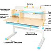 Конструкция стола крепкая и надежная благодаря металлическому каркасу.Растущая парта прослужит вам долго! Цветные защитные накладки на ножках и выдвигающемся органайзере добавят акцент в детский интерьер.