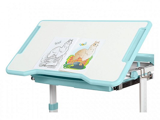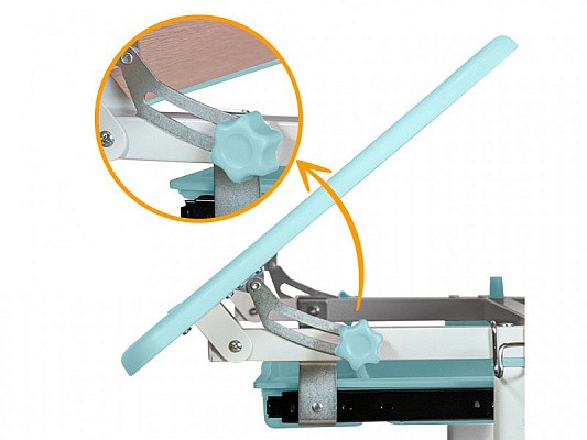 Подвижная часть столешницы меняет угол наклона до 50 градусов, что позволяет использовать ее как мольберт. Изменение угла наклона фиксируется прочными пластиковыми фиксаторами.