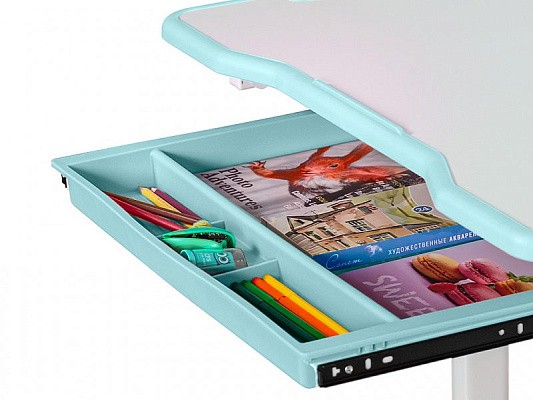 Под столешницей размещен выдвижной органайзер с разделителями для хранения школьных принадлежностей.