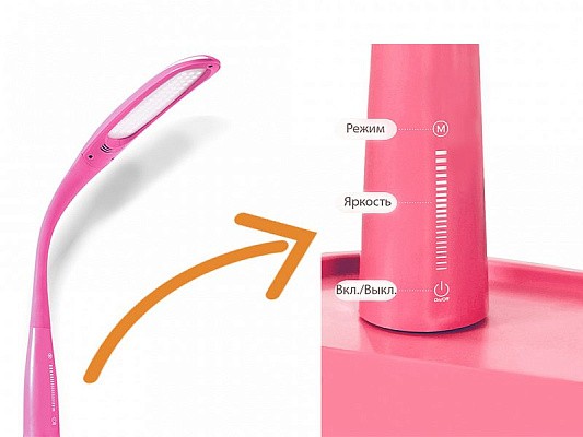 LED лампа имеет современный и стильный дизайн корпуса, в функции лампы включены три режима; для учебы, для отдыха и утренний свет. Лампа оснащена сенсорным выключателем, а также возможностью регулирования яркости всего одним касанием. Прорезиненная ручка позволяет менять угол наклона плафона.