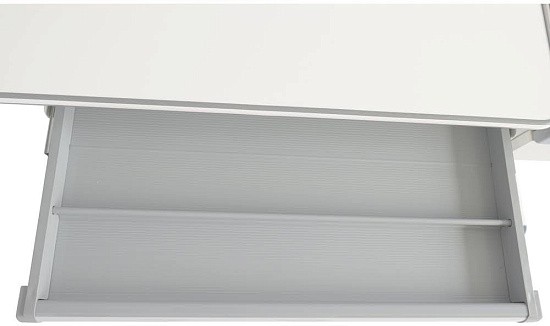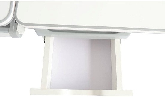 Парта имеет три выдвижных ящика, два из трех ящиков имеют секционное разделение, для комфортного хранения карандашей, ручек и прочей мелкой канцелярии.