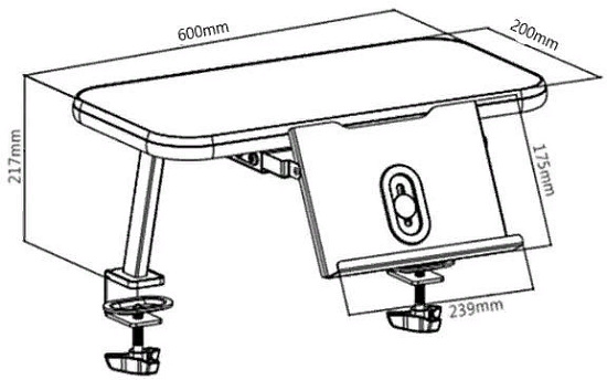 Основные параметры: размер полки – 60х20х21,7 см; размер крепления – 45х22 см. Регулируемость по наклону – 90 градусов. Установка и снятие полки осуществляется с помощью зажима F-образной формы.