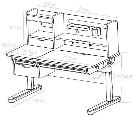 «ФанДеск» могут регулировать высоту парты под рост ребенка, а столешница может изменять угол наклона. Каждую модель можно оборудовать дополнительными аксессуарами. Парта «FunDesk» имеет множество ящиков для хранения канцелярских принадлежностей и тетрадей.