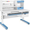 FunDesk Sentire является удлиненной на десять сантиметров версией парты Pensare. Также как и младшая версия имеет вместительную надстройку с тремя полками, выдвижным ящиком, подставкой для книг, и перфорацией для крепления дополнительных аксессуаров. Под разделенной на две зоны столешницей, располагаются еще три выдвижных ящика, два из которых имеют разделение внутреннего пространства на секции, для более комфортного хранения вещей. Для безопасности ребенка все углы парты закруглены, а на механизме регулировки высоты и ножках присутствуют пластиковые накладки, что помимо защиты, также выполняют декоративную роль.