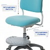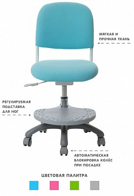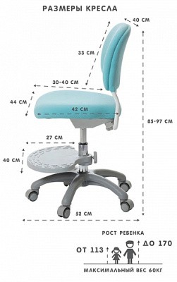 Растущее кресло Holto-15 подходит как для растущих парт, так и для обычных столов. Регулировка высоты кресла и глубины сиденья позволят подобрать наиболее удобное положение для Вашего ребенка, которое сохранит осанку в правильном положении во время занятий, а регулируемая подставка для ног обеспечит их положение под углом 90 градусов. Кресло подойдет для школьников ростом от 110 до 170 см. Колеса блокируются при посадке человека выше 20 кг.