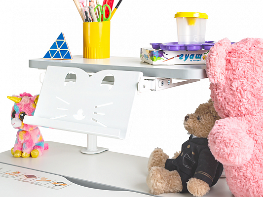 Компактная удобная и стильная полка Mealux BD-S50 станет прекрасным дополнением для рабочего стола вашего ребенка. Ее важной особенностью является наличие металлической подставки для книги с изменяемым углом наклона.