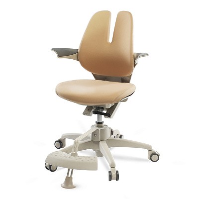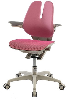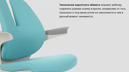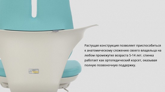 Высокая спинка имеет ярко выраженный ортопедический обхват, помогает пользователю добиться правильного расположения всех отделов позвоночника и поясницы. Она сделана с применением технологии Duoflex, регулируется по росту, в глубину, что позволяет персонализировать ее под особенности телосложения в период интенсивного роста.