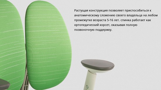 Конструкция спроектирована для формирования правильной осанки в процессе роста ребенка. Отсутствие дискомфорта при сидении помогает сконцентрироваться на учебе.