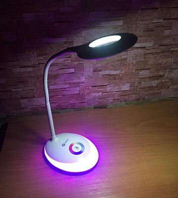 Светодиодный настольный светильник с RGB (256 цветов) ночником и встренным аккумулятором.Светильник и ночник одновременно! С регулировкой яркости и сенсорным управлением. Управление режимом работы светильника осуществляется прикосновениями к сенсорной панели на его передней части. Однократное прикосновение к области сенсорной панели включает основной светильник, повторное прикосновение выключает его. Кнопками можно изменять яркость светильника. Включение и выключение дополнительного светильника осуществляется путем однократного прикосновения к области сенсорной панели. Однократное прикосновение и плавное перемещение вдоль сенсорной цветовой шкалы вызывает соответствующее изменение цвета свечения. Благодаря гибкости опорной ножки светильника, устройство становится неповторимо в удобстве и простоте использования. Высокоемкостной аккумулятор (1000 мАч) лампы отличается высокой безопасностью и экологичностью и позволит вам сократить затраты энергии.