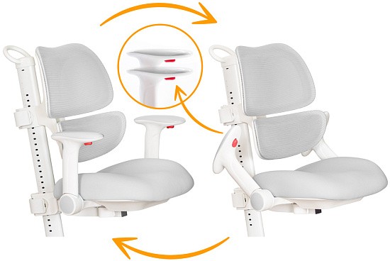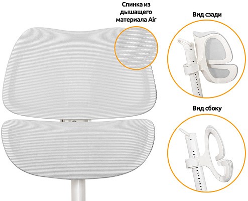 Ортопедическая спинка из дышащего материала Air разделена на две части. Движимая нижняя часть плотно прилегает к спине ребенка, повторяя изгиб позвоночника, поддерживает поясницу и обеспечивает еще больший комфорт во время занятий.