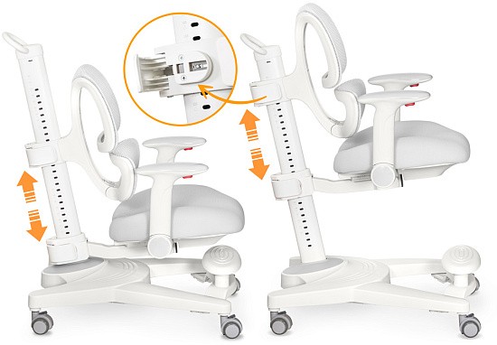 У кресла раздельная регулировка высоты спинки и сиденья. Это поможет наиболее точно настроить кресло под рост ребенка.