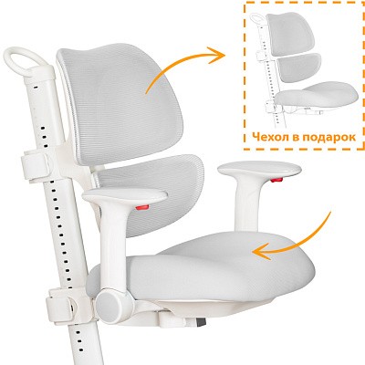 В подарок к креслу идут съемные чехлы из дышащей ткани. Они защитят от загрязнений и легко снимаются для замены или стирки.
