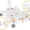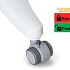 Колесики с мягким покрытием плавно скользят по поверхности пола не повреждая ее. Они автоматически блокируются при погрузке от 25 кг. Это необходимо, чтобы обеспечить статическое положение ребенка на занятиях. Блокировку можно выключить специальными стопорами.