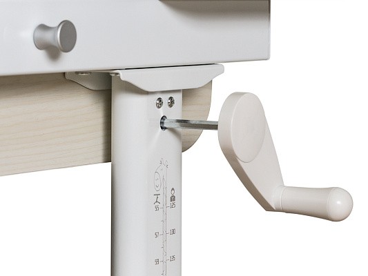 Высота стола регулируется с помощью червячного механизма ручкой, которую можно установить слева или справа на боковой части стола. Регулировка высоты Mealux Winnipeg в соответствии с ростом ребенка обеспечивает комфортную работу за столом и формирование правильной осанки