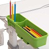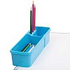 Одним из таких модулей является навесной пенал-контейнер для растущих парт. Сделанный из высококачественного, прочного ABS-пластика, он также абсолютно надёжен и безопасен для детского здоровья, как и вся продукция компании. Пенал отличается изрядной глубиной и оригинальной компоновкой отсеков. Благодаря такому подходу, во время подъёма столешницы даже в крайнее положение, из него не выпадет на пол ни один, даже самый мелкий, предмет. Стоит отдельно отметить очень интересное и удобное решение для вертикального хранения карандашей и ручек.
