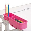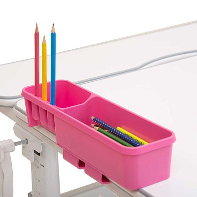 Фиксируясь на краю столешницы, пенал находится всегда под рукой ребёнка, им легко пользоваться, но при этом он не занимает ни сантиметра рабочего пространства. Это одна из тех вещей, к которым очень быстро привыкаешь и взаимодействие с ними производится машинально, без каких-либо сомнений и затруднений. Подчас, именно такие мелкие аксессуары к растущим партам становятся тем самым краеугольным камнем, без которого весь процесс обучения и физического развития буксует и слабо продвигается вперёд. Какими бы чудесными свойствами ни обладали растущие парты, без маленьких и приятных, незаметных и удобных помощников им не обойтись!