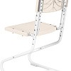 Сиденье и спинка стула сделаны из гнутоклееной влагостойкой фанеры, покрытой, безопасным для здоровья человека, лаком на водной основе. Многослойная структура фанеры обеспечивают повышенную прочность.