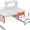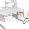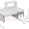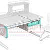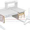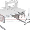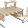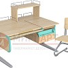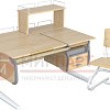 Парта 120 см с раздельной столешницей + тумба + задняя приставка + задняя двухъярусная приставка