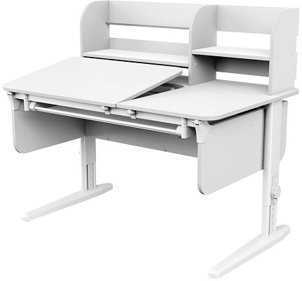• Модель с двумя эргономичными столешницами: одна регулируется по углу наклона, вторая стационарная.