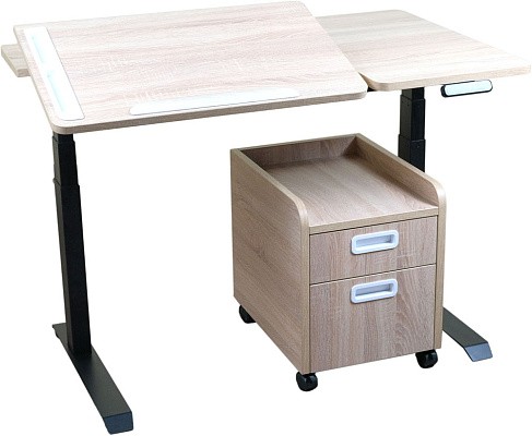 Электронный стол Trifecta со встроенной столешницей с изменяемым углом наклона— это самый эргономичный вариант среди всех столов с электроприводом! Рабочая поверхность столешницы снабжена органайзером для хранения канцтоваров, предотвращая их падение при изменении угла наклона. А также магнитной линейкой для удержания тетрадей во время письма.