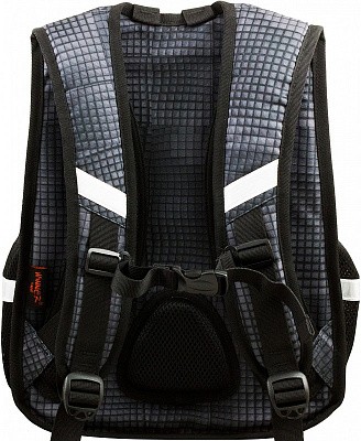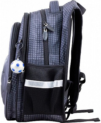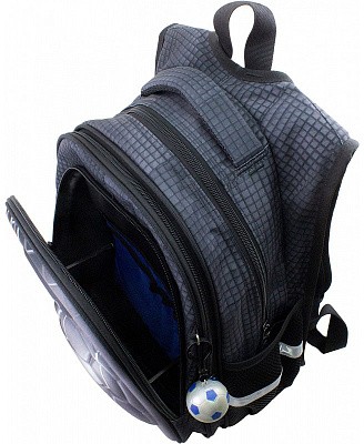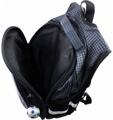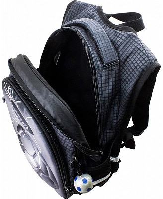 В школьном рюкзаке два основных отделения и карман-органайзер. Основное отделение с 2 двумя разделителями и резинкой для крепления школьных принадлежностей. Второе отделение без наполнения. Спереди вместительный карман на молнии украшенный объёмной 3D картинкой с органайзером для письменных принадлежностей. По бокам карманы-сеточки на резинке.